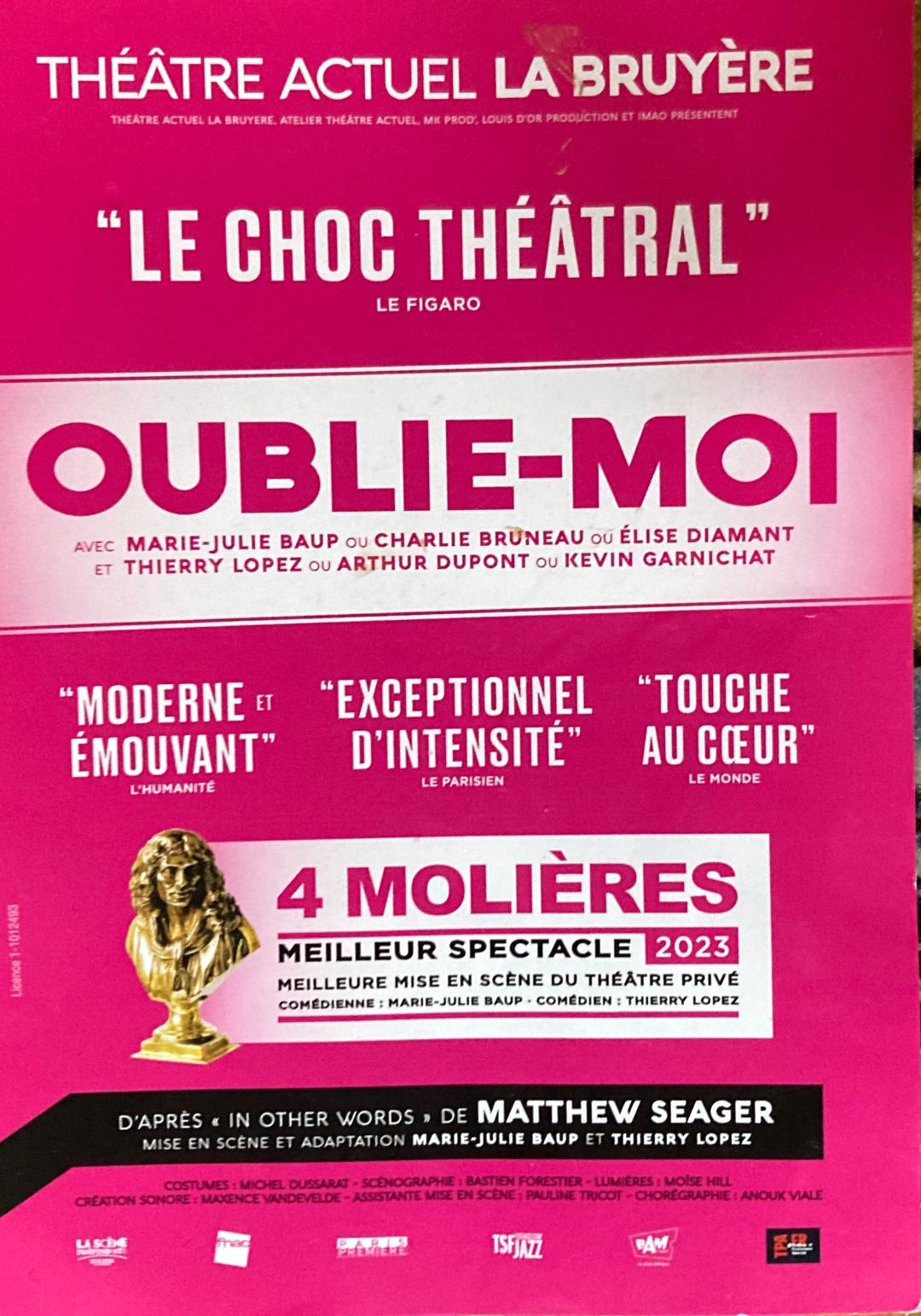 L’affiche de la pièce “Oublie-moi” de Marie-Julie Baup et Thierry Lopez
