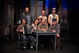 La scène se partage entre deux décors, le café où l’on boit sec et se confie, et l’extérieur, la mine, les champs où volent les colombes, où se retrouvent les amoureux. D’emblée, on y croit, on est dans cette « famille » recomposée faite de Français natifs de Noeux-les-Mines et d’émigrés polonais. Les joies sont spontanées : le plaisir d’être ensemble, vivants, de trinquer, de regarder la coupe du monde de foot, de jouer de l’accordéon, de fraterniser, d’aimer… Dans les dialogues comiques et légers, il y a toute la chaleur des « gens du Nord », leur sincérité, leur générosité sobre. Mais aussi les problématiques d’aujourd’hui : le racisme anti-polonais, l’impérialisme froid des patrons, les jalousies, la femme réduite aux tâches ménagères mais qui dit la vérité, qui engueule, raisonne… Certains moments sont une leçon de vie. C’est profond. Mais tout est fluide, subtil, jamais pesant. Aucune longueur, aucune parole moralisatrice, tout est implicite, c’est la grande intelligence de ce texte très émouvant. On rit souvent car les répliques, les acteurs sont impayables, tellement justes et rodés. A la fin, la salle – des vieux et des jeunes – vote quatre rappels. Nous aussi !